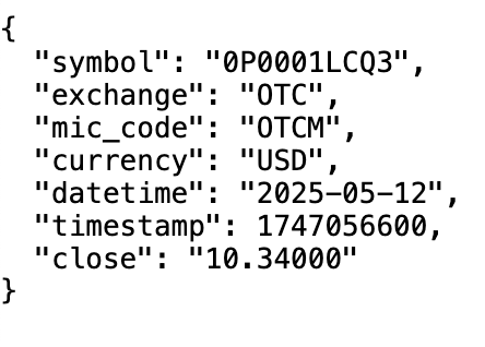Real-time pricing: Stay up-to-date with the latest mutual fund prices, updated once a day after the market closes. Our standard price endpoints, including /time_series, /quote, and /eod, keep you informed about the most recent pricing information.